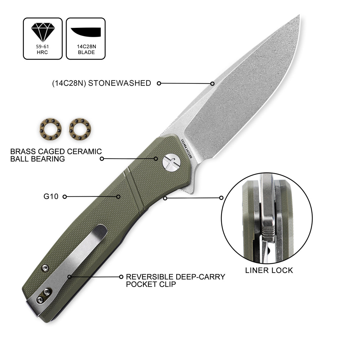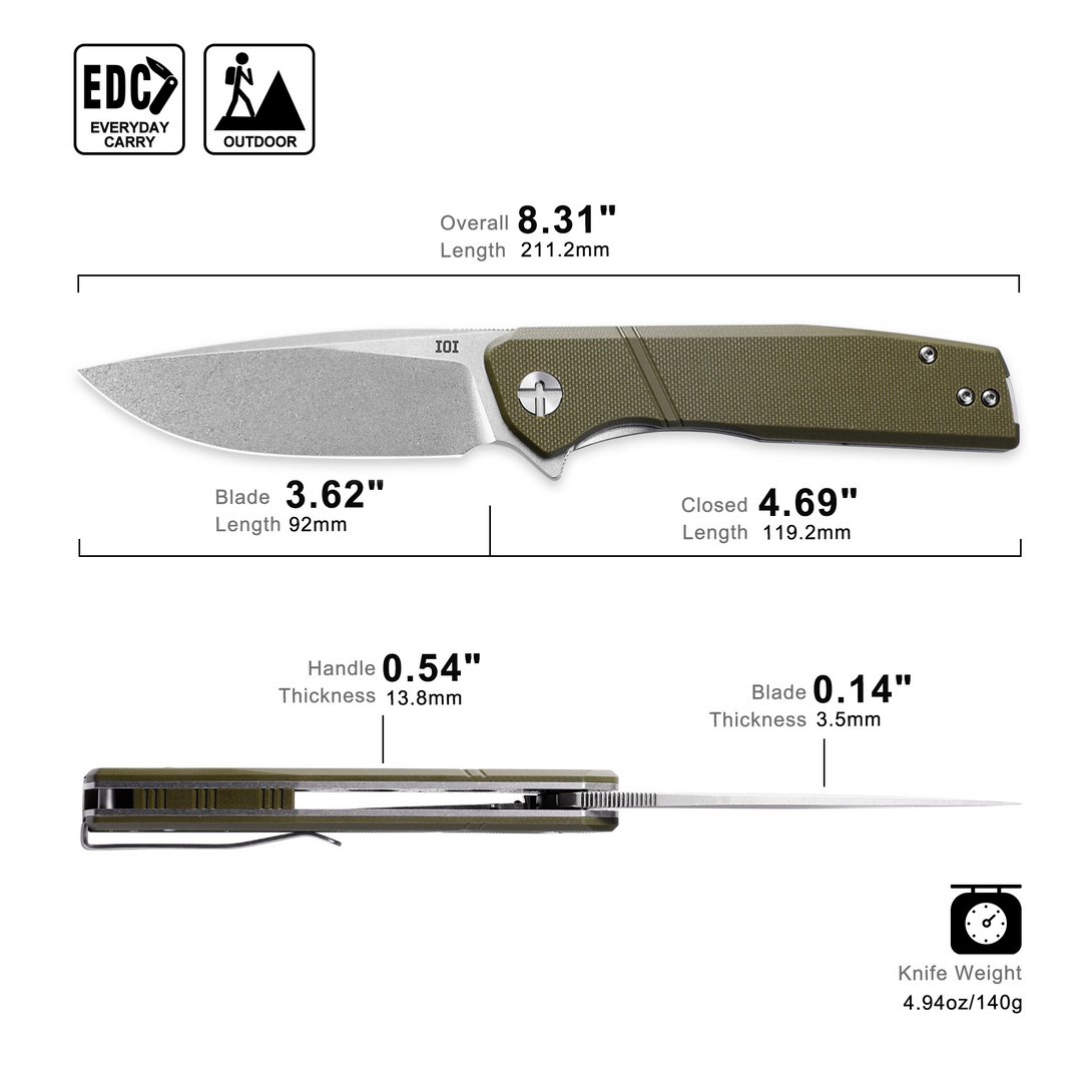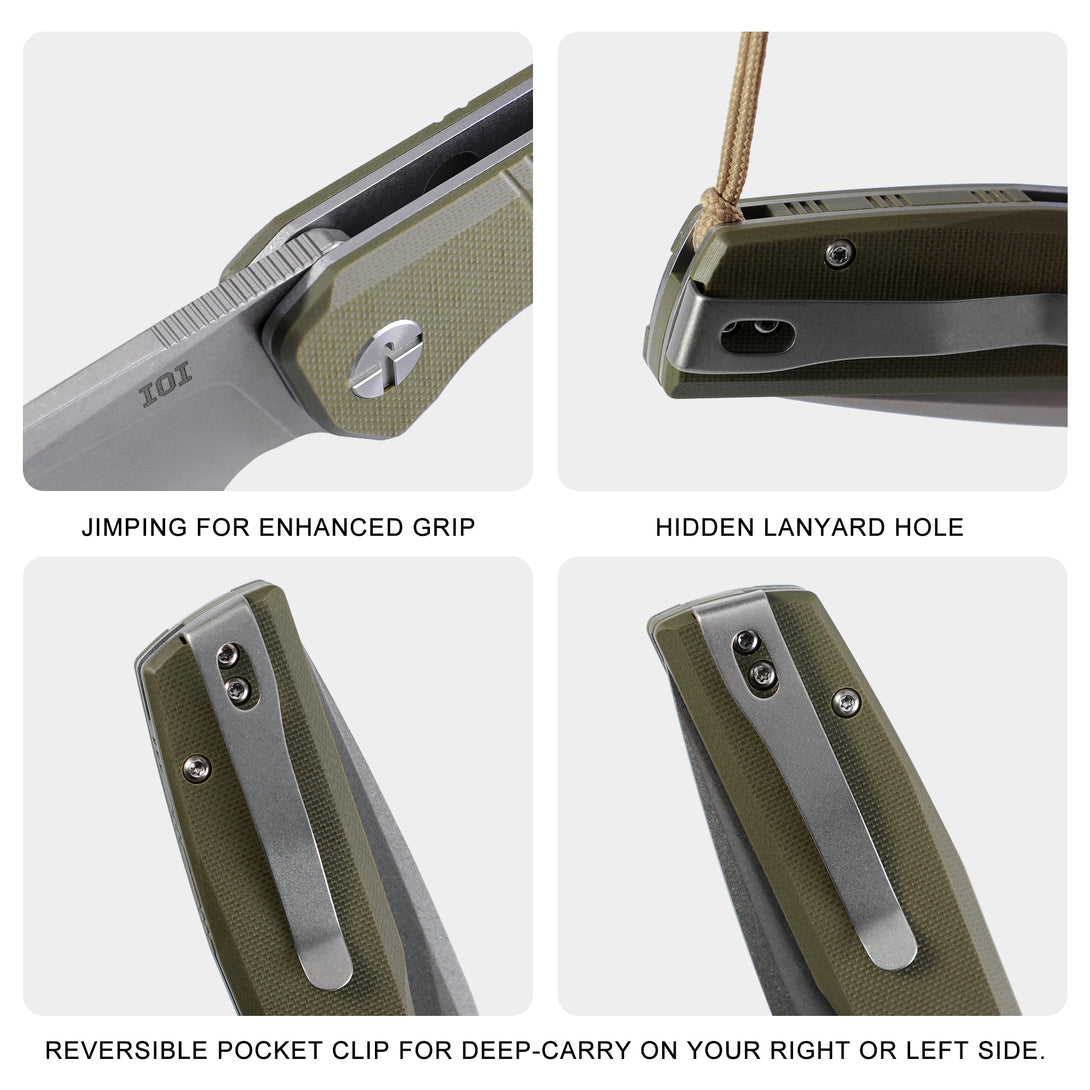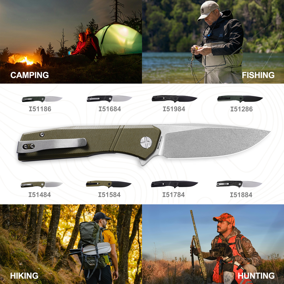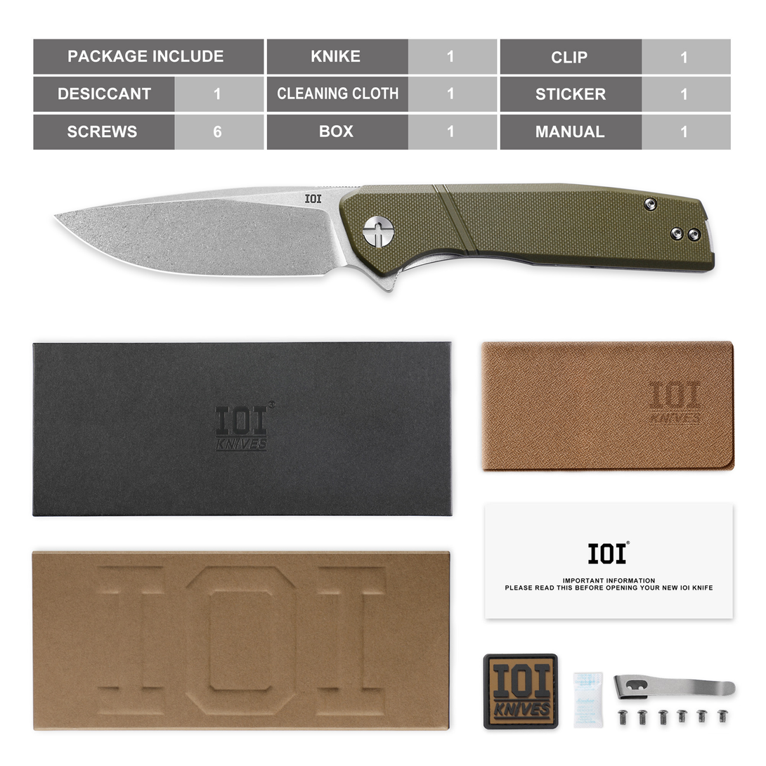IOI Task Force I51484 Pocket Knife for Men – Folding Knife with 14C28N Stonewashed Blade, G10 Handle, EDC Pocket Knife with Clip, Enhanced with Custom Left-Side Clip for Everyday Carry & Camping