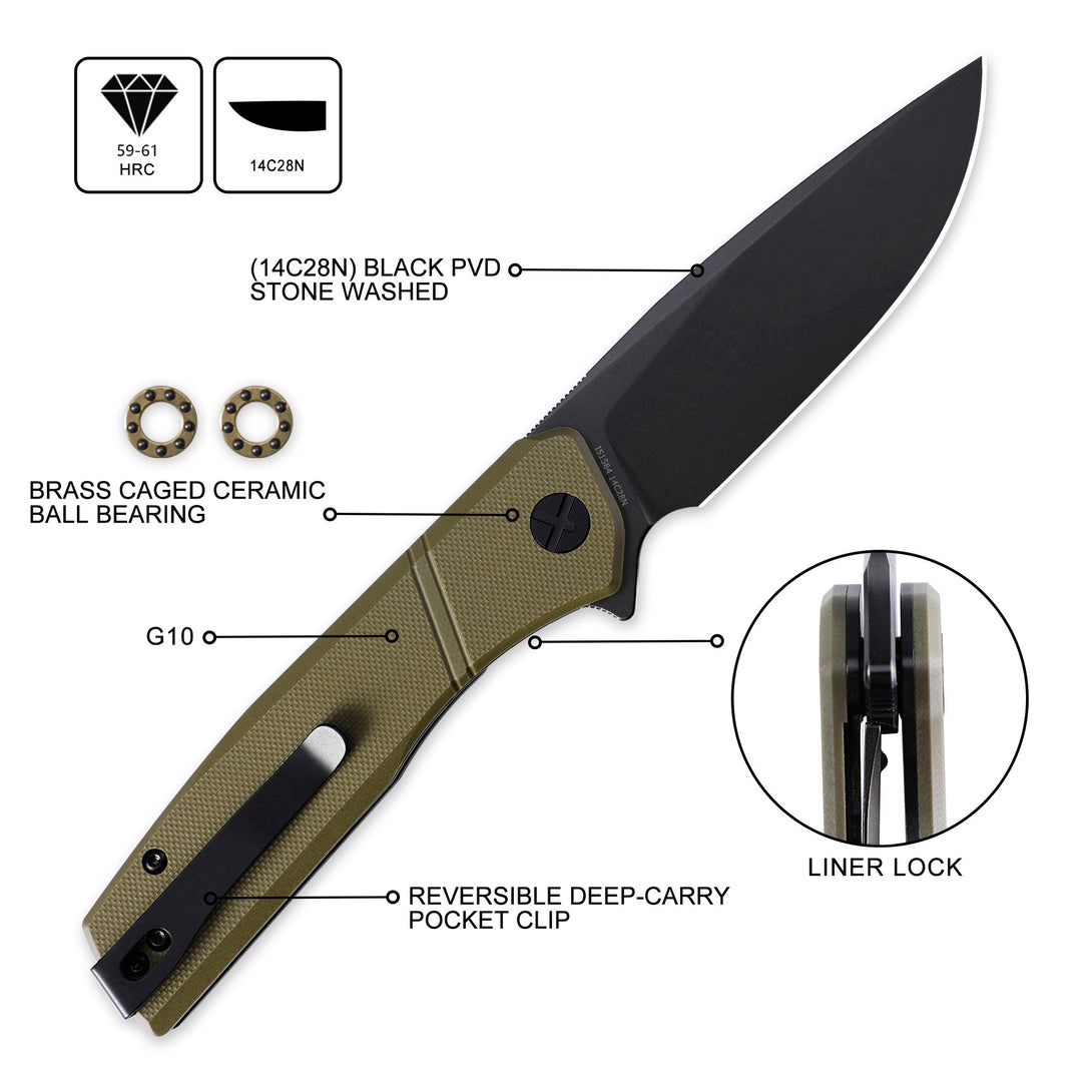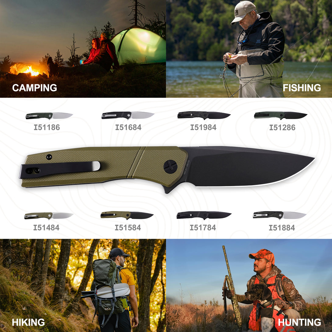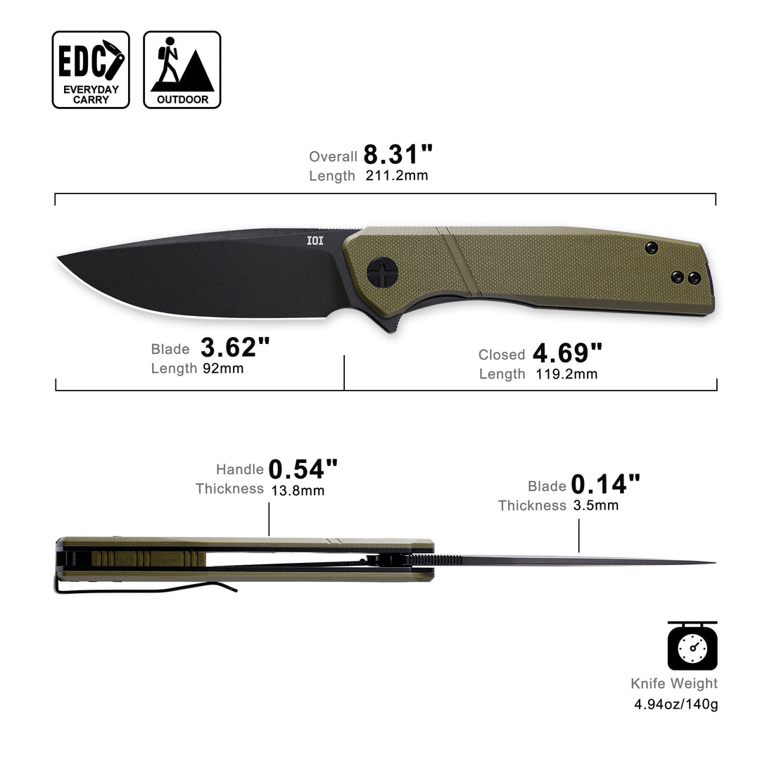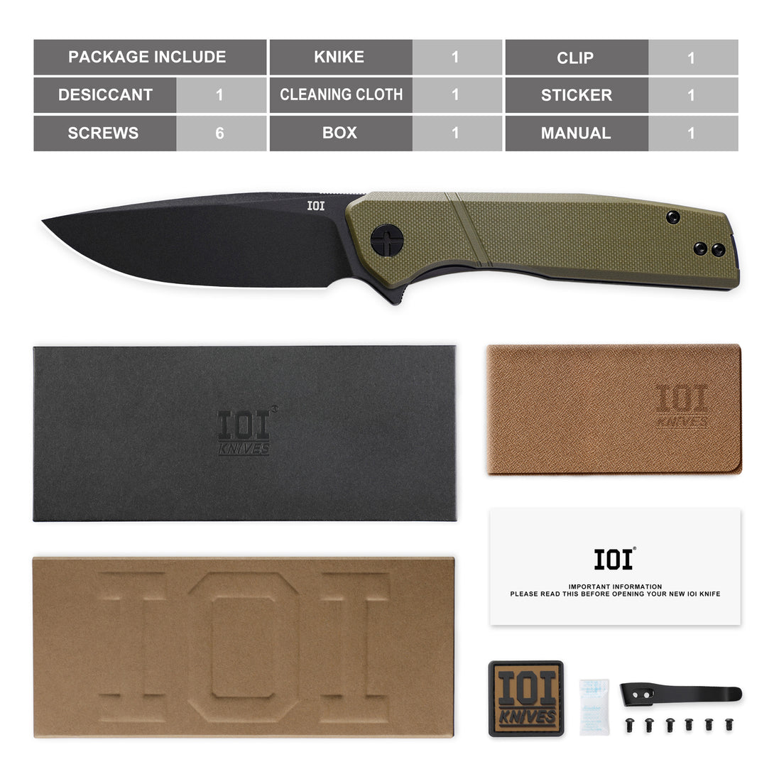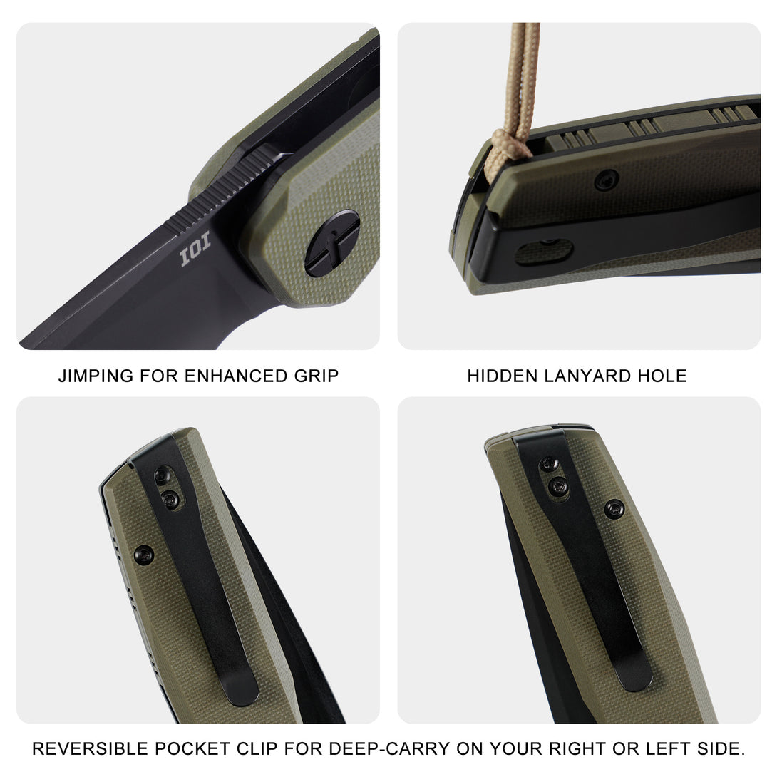IOI Task Force I51584 Tactical Pocket Knife for Men – 14C28N Black Titanium PVD Folding Blade, G10 Handle, EDC Folding Knife with Clip, Enhanced with Custom Left-Side Clip for Camping & Everyday Carry