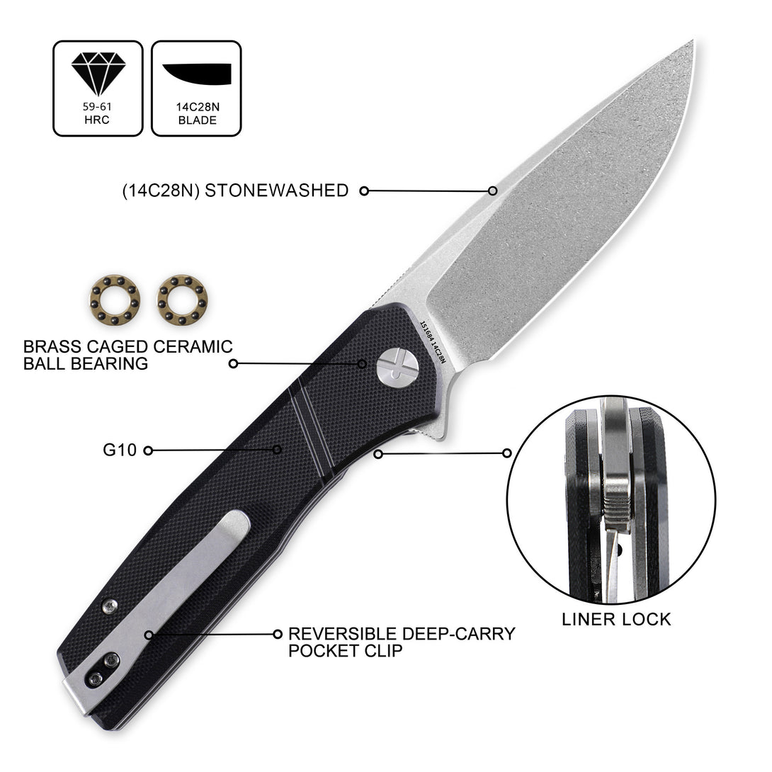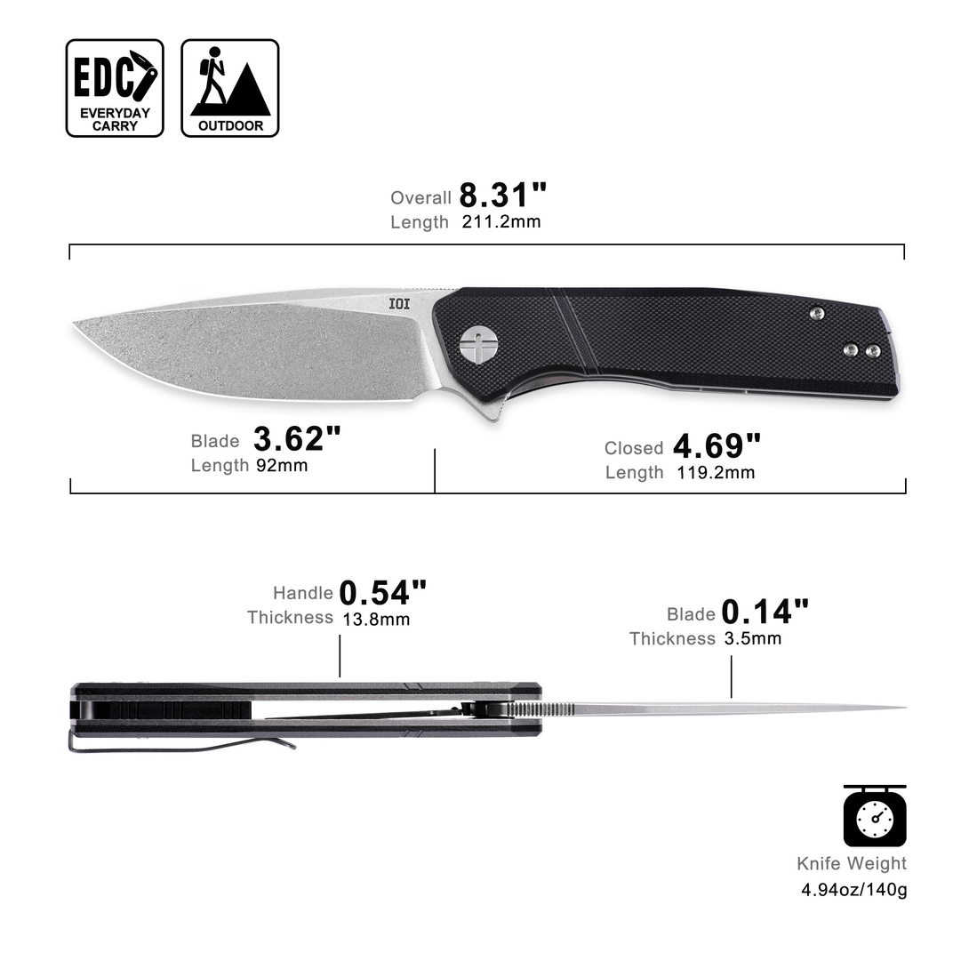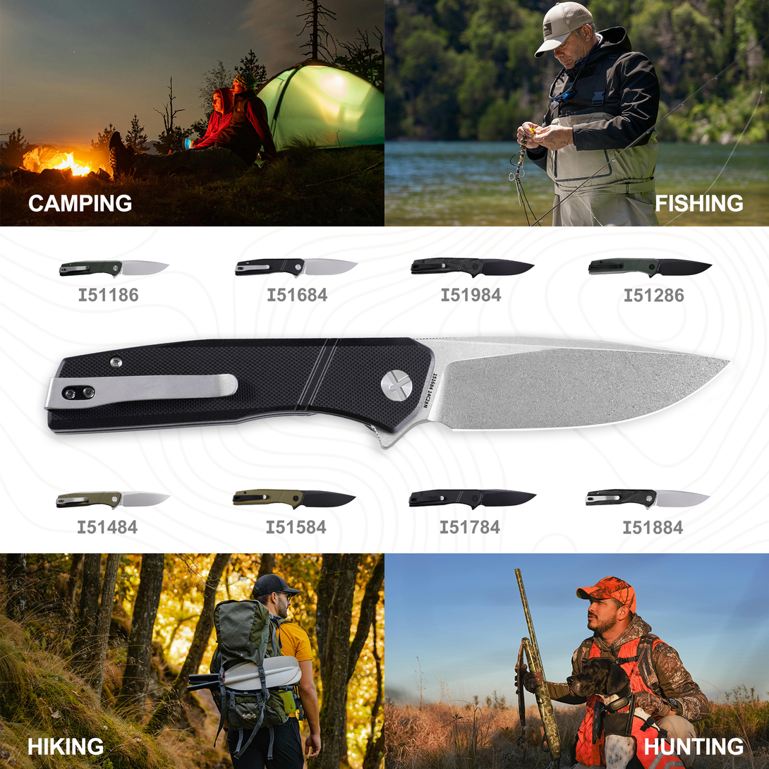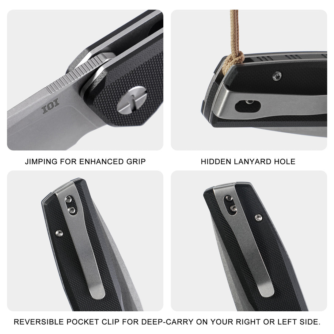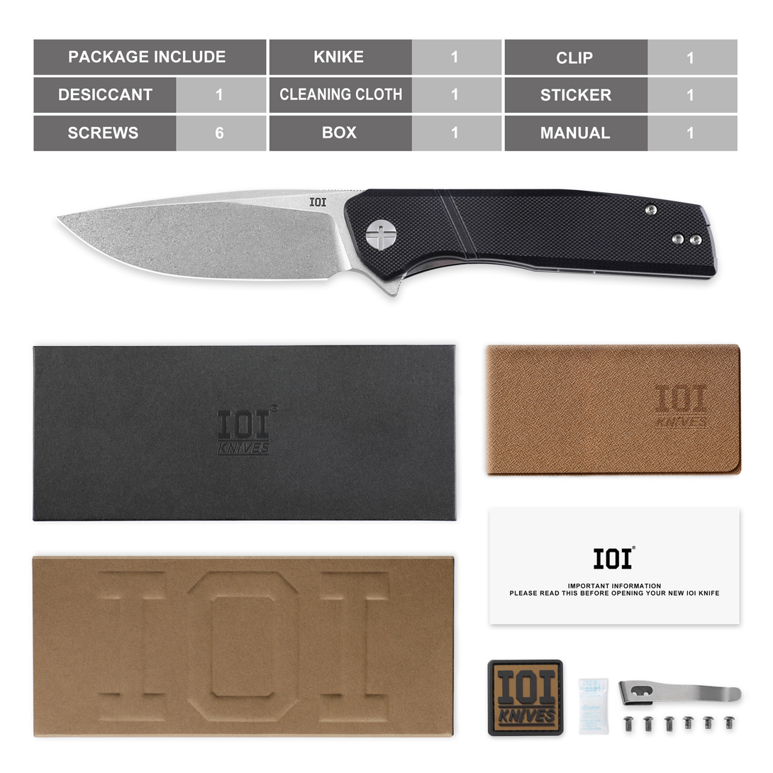 IOI Task Force I51684 Pocket Knife for Men – 14C28N Natural Stonewashed Folding Blade, Black G10 Handle, EDC Folding Knife with Clip, Enhanced with Custom Left-Side Clip for Everyday Carry & Camping