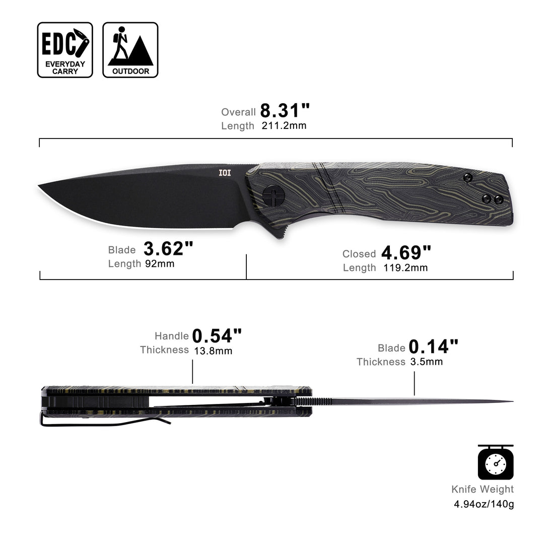 Included Components: Knife*1, Sticker*1, Brand Packaging Box*1, Cleaning Cloth*1, Screws*6, Custom Fit Left Clip*1, User Manual*1, Desiccant*1