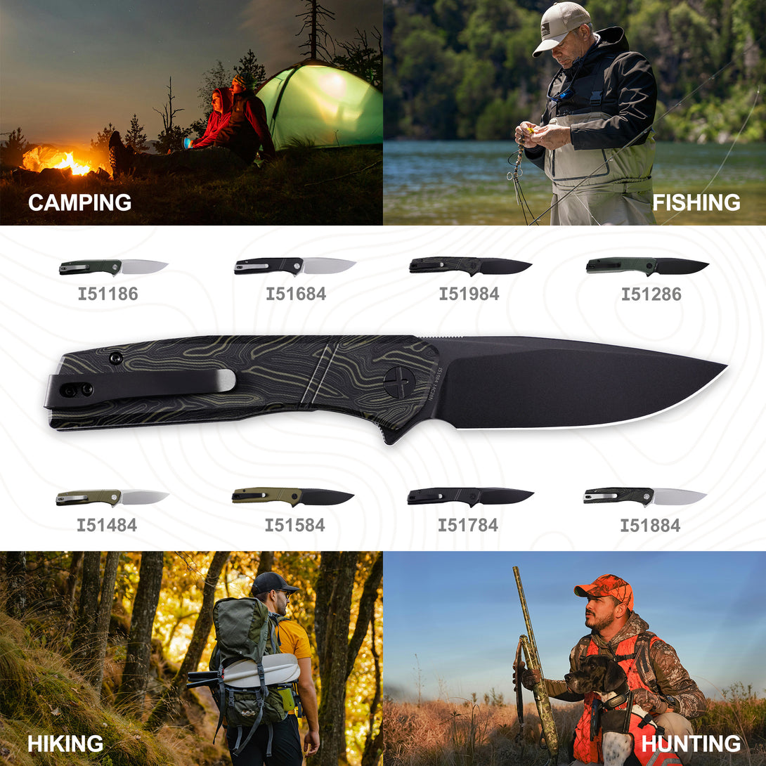 IOI Task Force I51984 Tactical Pocket Knife for Men – 14C28N Black Titanium PVD Folding Blade, Green Gmascus G10 Handle, EDC Knife with Clip, Enhanced with Custom Left-Side Clip for Everyday Carry & Camping