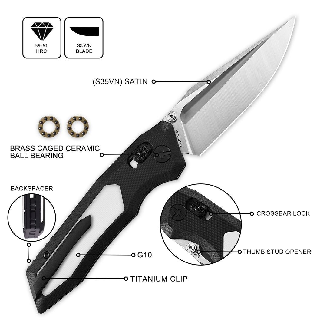 United Force Folding Pocket Knife, 2.98" S35VN Steel Blade, Green G10 Handle with Black Titanium Clip, Premium EDC Knife for Men & Women, Compact Tactical Camping & Hiking Knife