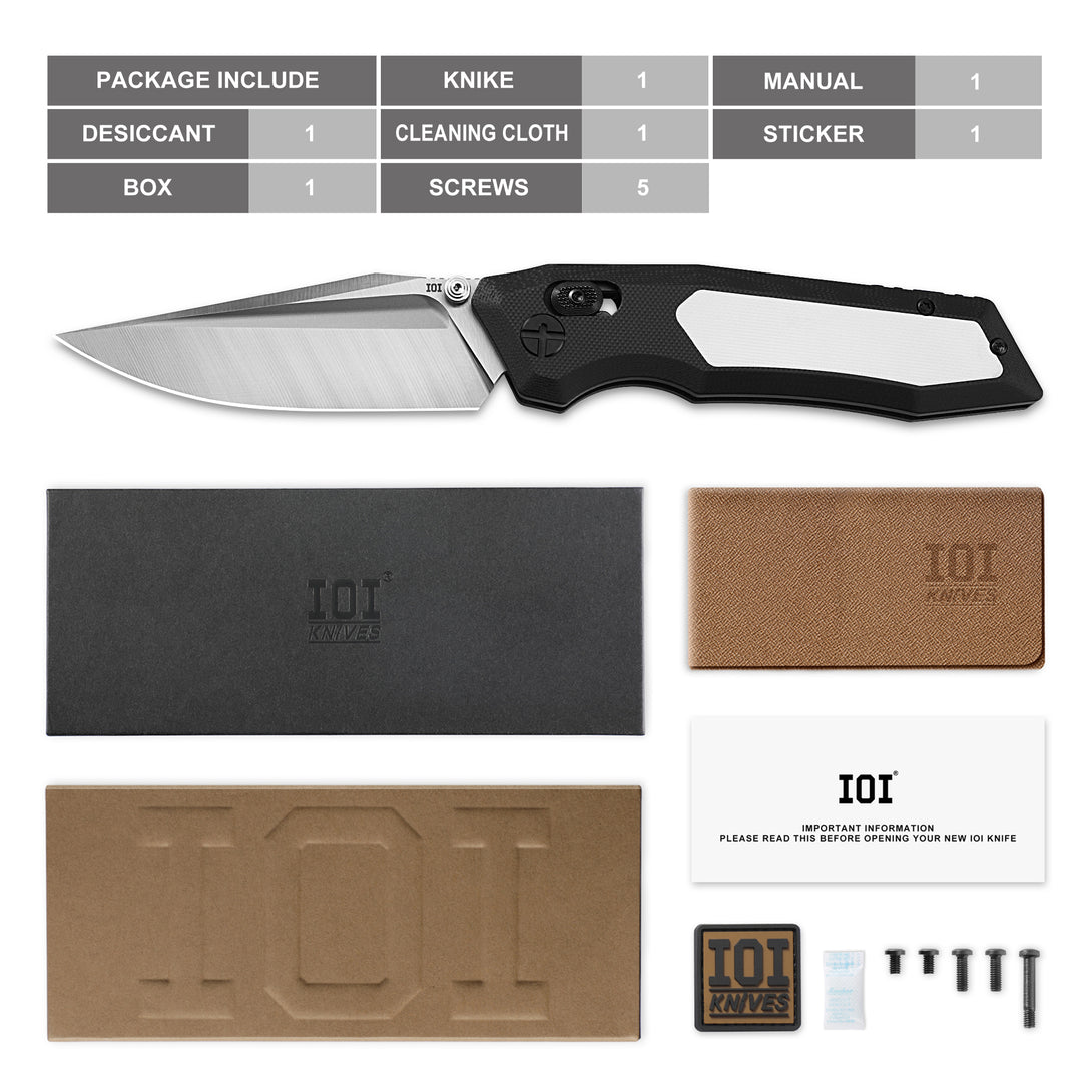 Included Components: Knife*1, Sticker*1, Brand Packaging Box*1, Cleaning Cloth*1, Screws*5, User Manual*1, Desiccant*1, Canvas Bag*1
