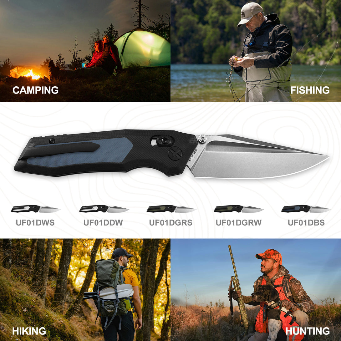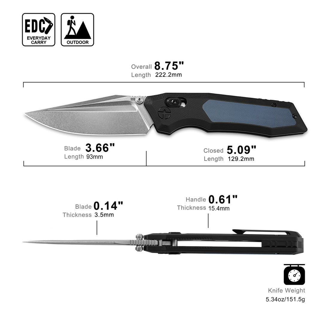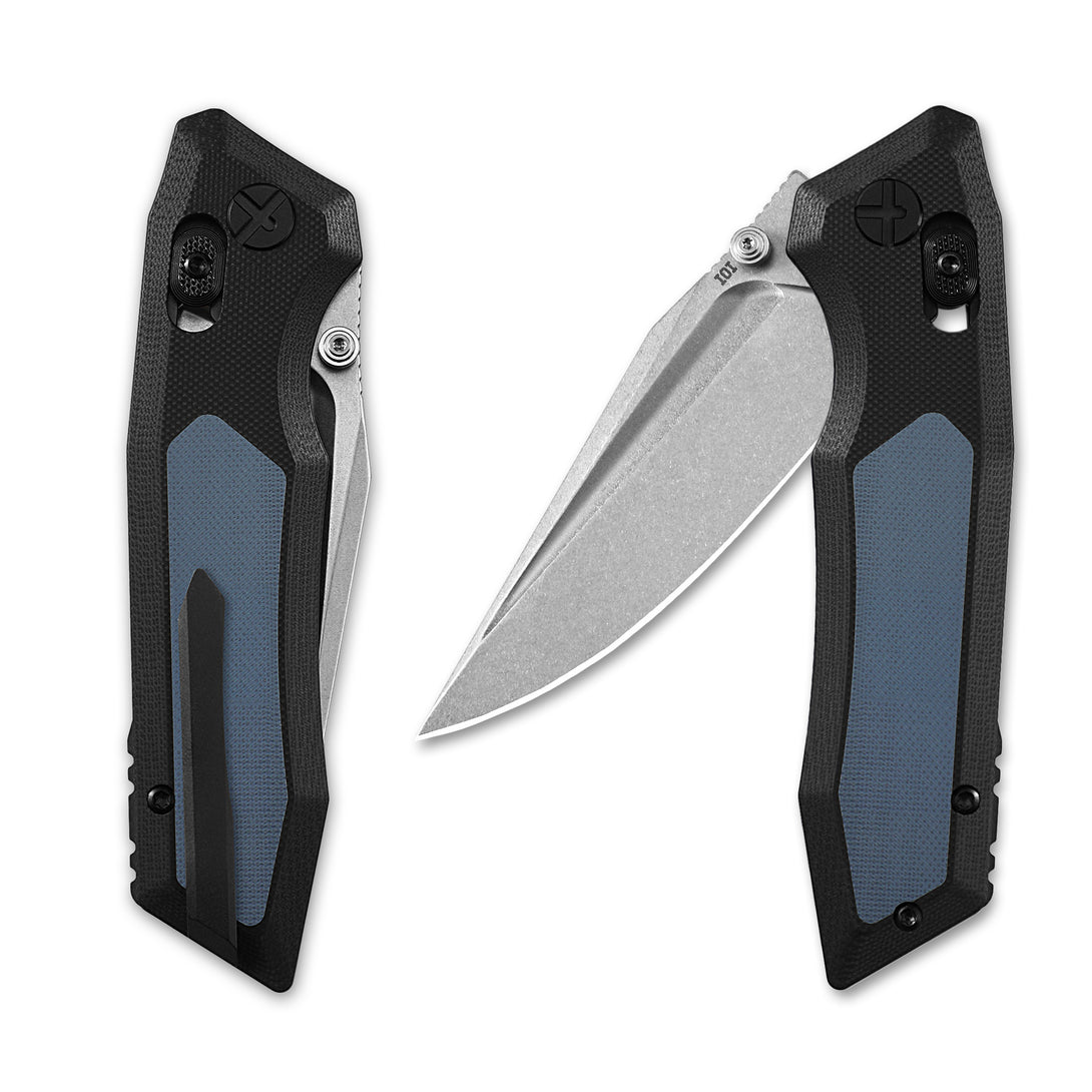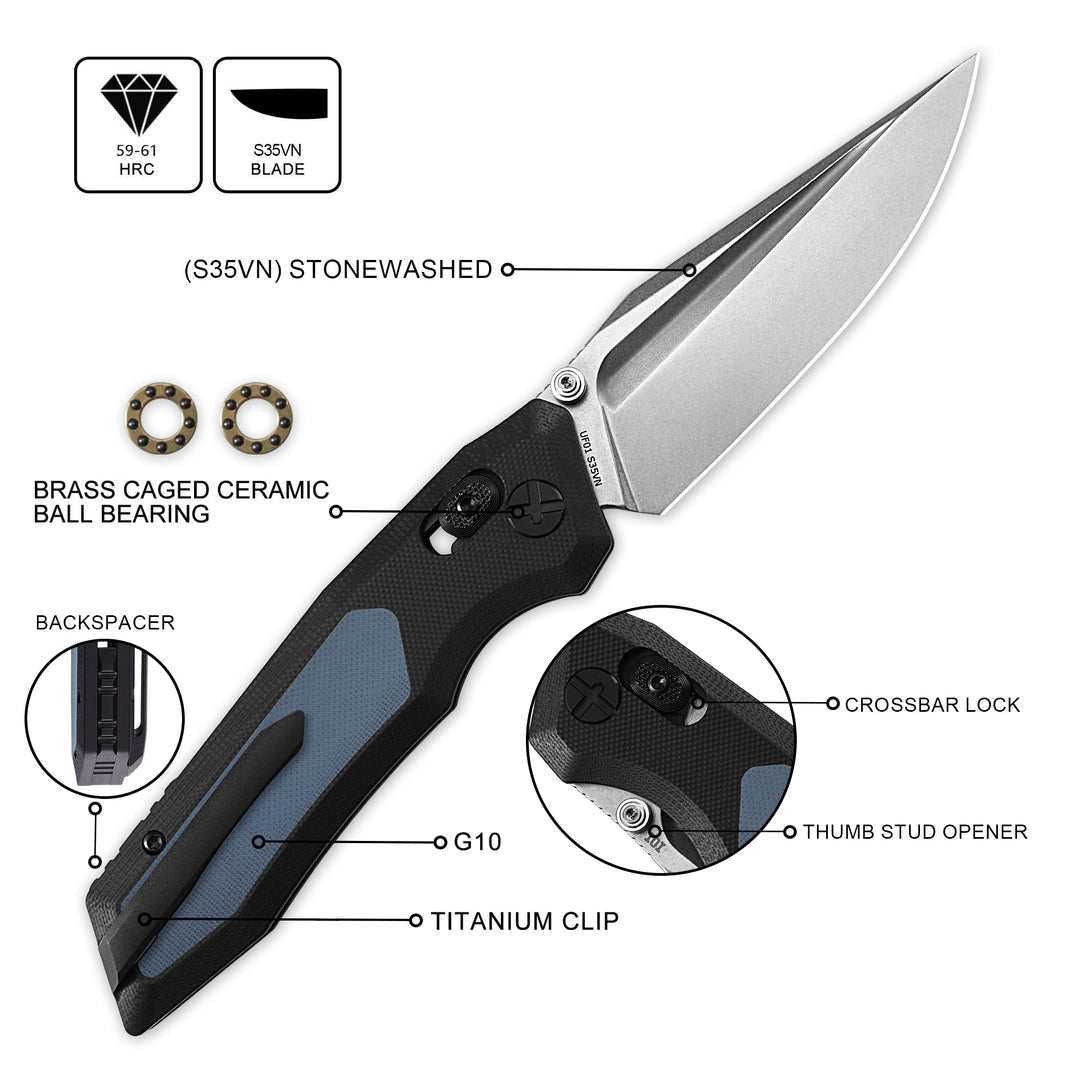 United Force Folding Pocket Knife – 2.98" S35VN Stonewashed Blade, Blue & Black G10 Inlay Handle, Black Titanium Clip | Premium EDC Knife for Camping, Hiking & Everyday Carry